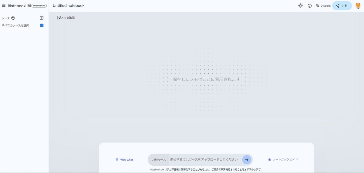 そして、このノートブックにNotebookLMが参照できる情報データを入れたいと思います。
