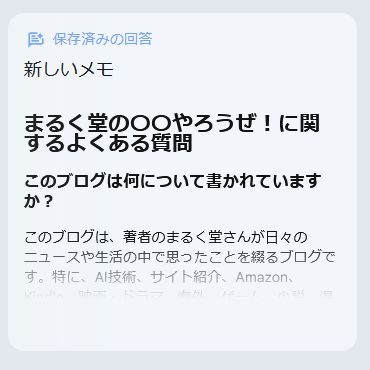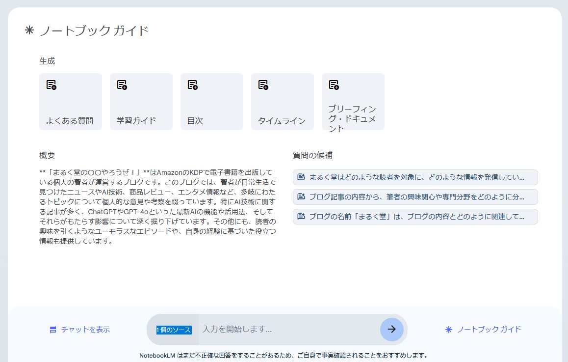 これはNotebookLMがこのブログを参照し、理解したことを示しています。