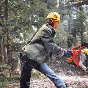 「キックバック」とは、チェーンソーを使う際に高速回転の反動により、意図せずに使用者の方に刃が急激に跳ね上がる現象を言うそうです。